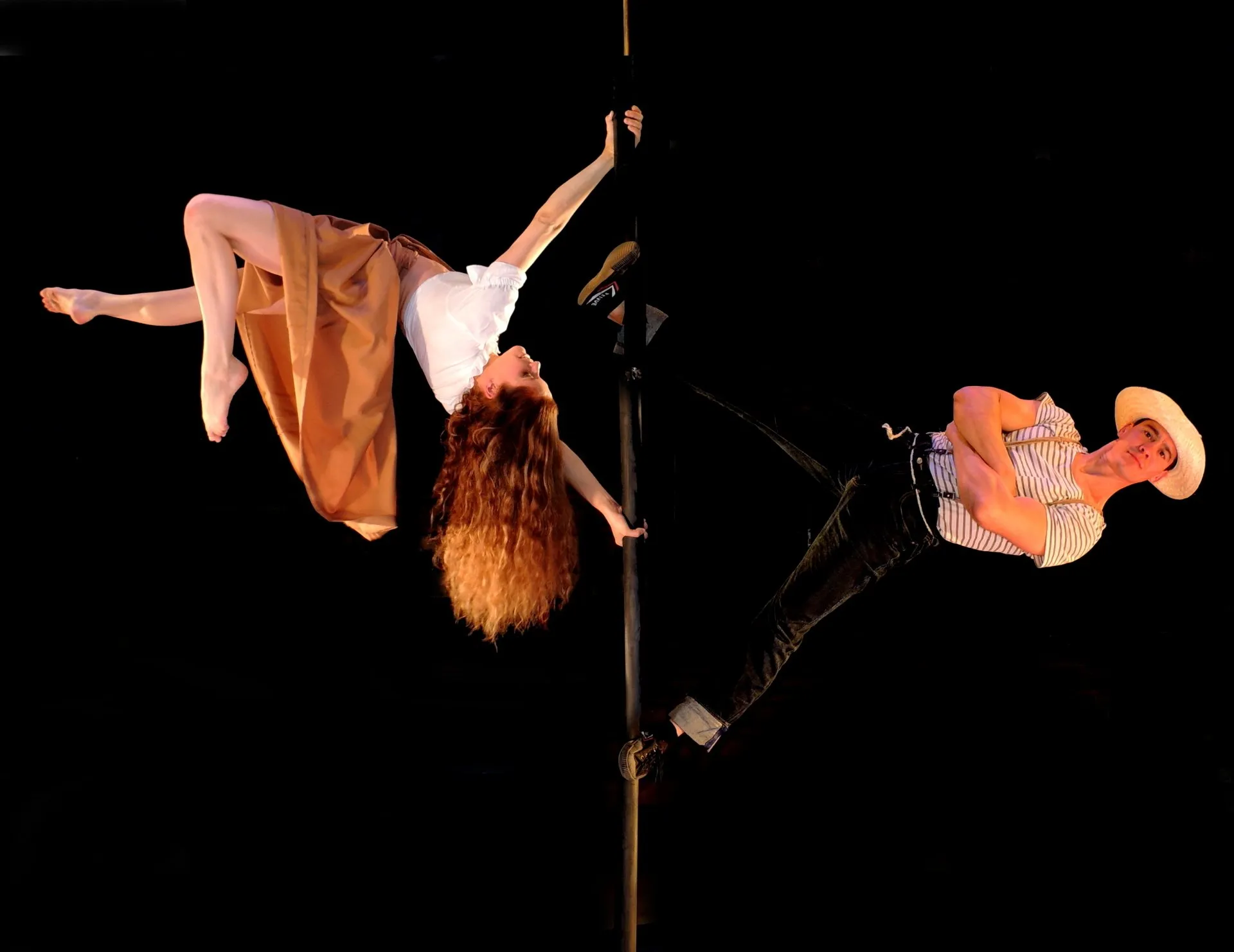 Their training began in a self-taught manner, later supplemented by coaching from renowned artists and trainers such as Sebastián Afonso, Cristiano Mailhos, Adil Rida, Jonathan Fortín, Nadia Richer, and Michael Lanphear. Their collaboration with Jorge Blass and other magicians sparked their interest in magic, leading them to premiere the first aerial quick-change act at the International Magic Festival of Madrid in 2015. Their ongoing research into quick-change techniques culminated in the act “Memories”, which premiered in 2018.